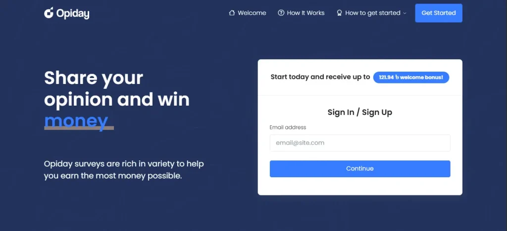 Opiday is an online paid survey site that allows users to earn rewards by answering surveys. The process is straightforward: register, take surveys, and receive rewards.